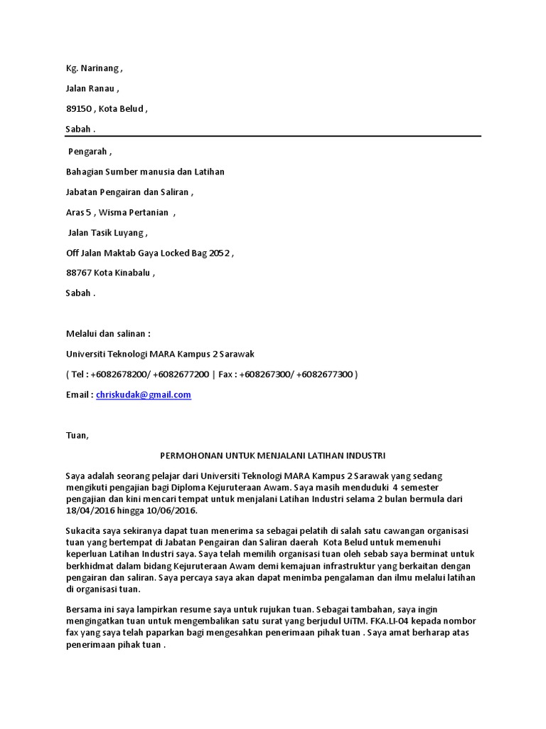 Surat Permohonan Latihan Industri Pdf
