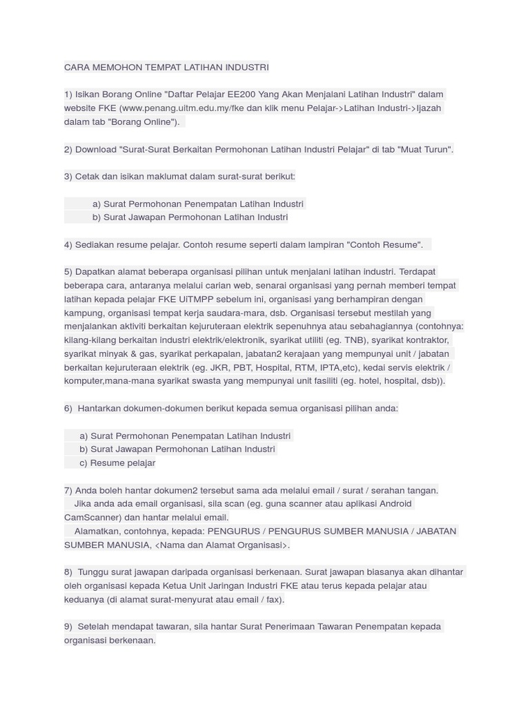 Cara Memohon Tempat Latihan Industri Pdf